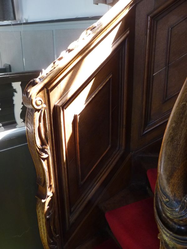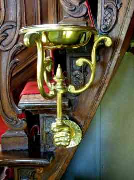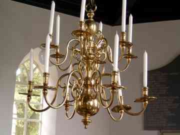 Op deze herenbanken staan tien koperen blakers, welke voorheen op de banken in het schip hebben gestaan. In de kerk hangen nog drie twaalfarmige koperen kronen, eveneens uit de 18e eeuw, tegenwoordig in de verlichting bijgestaan door grote witte bollen, maar in de 19e eeuw door zes hanglampen.