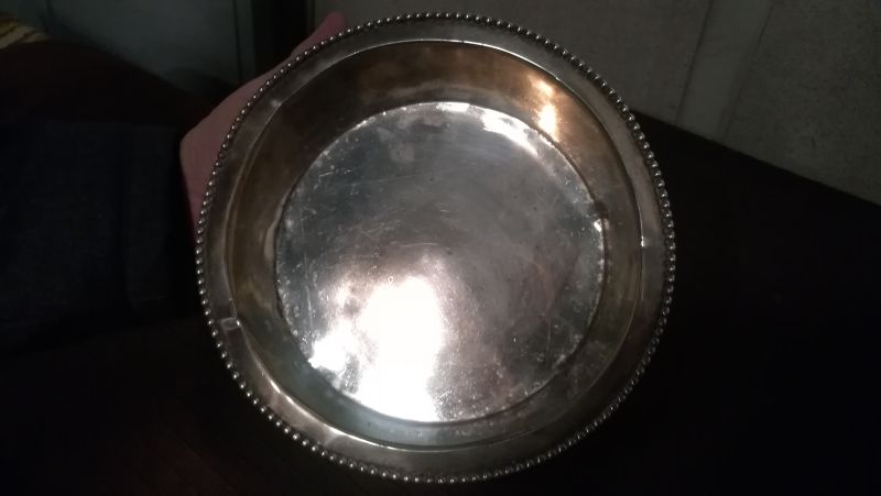 Aan de trap is een koperen hand vastgemaakt die het doopbekken draagt. Dit geheel is volgens de diaconieboeken in 1783 gemaakt door Saco van Aalsum en heeft 88 - 7 - 0 carolusguldens gekost en de "koperen Drajer tot het gebruik van de doopbekken” nog eens 28 carolusguldens. Volgens een opgave uit de 19e eeuw stond er op het doopbekken te lezen: "Den 6 November 1783 doe deese Doop bekken is gemaakt waren Douwe Wierds en Geert Johannes Diakenen". Echter als je tegenwoordig het doopbekken bekijkt, is daar helemaal geen inscriptie op te vinden. De oplossing werd enkele jaren geleden gevonden toen de directeur van museum ’t Coopmanshuis in Franeker in een zilvercatalogus dezelfde inscriptie vond, een inscriptie dus die niet op het doopbekken te vinden was. Uit de catalogus blijkt ook dat er een meesterteken van Pieter Meeter, Leeuwarden 1783, op het bekken is afgebeeld. Mogelijk was de in de diaconieboeken genoemde Saco van Aalsum de leverancier, maar Pieter Meeter de maker van het bekken. Na enig speurwerk werd in een niet meer gebruikte kluis in de kerk het zilveren doopbekken teruggevonden! Kennelijk heeft de kerkvoogdij een koperen kopie van het zilveren doopbekken laten maken (om diefstal van het kostbare zilveren werkstuk te voorkomen?) en was men dat in de loop der tijden vergeten: bij het dopen werd immers steeds het koperen doopbekken gebruikt!