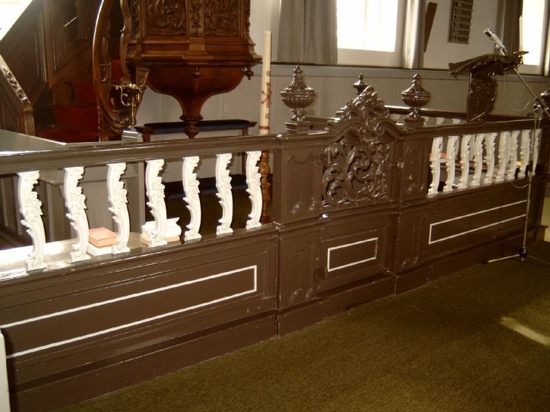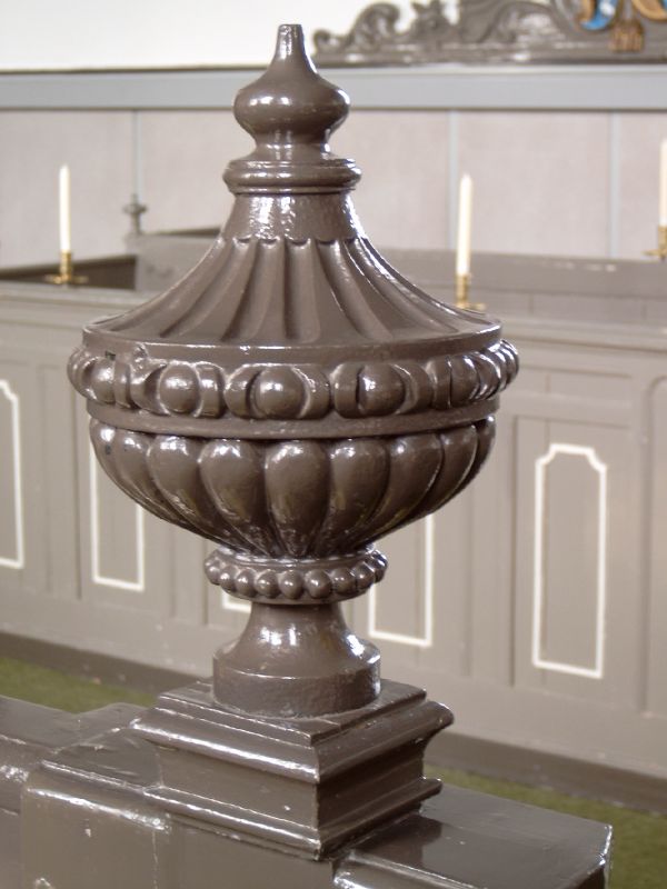 Het in 1985 gemaakte doophek vormt een eenheid met de kansel en heeft zes hoekvazen, waarvan de twee van de doorgang van jonger datum zijn (in empire stijl). Op het doophek staat nog een lezenaar met in de voet een voorstelling van een geopend boek.