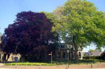 De tuin van de pastorie staat nog vol struiken, de twee prachtige hoge bomen van nu zijn nog niet goed herkenbaar. De Rabobank was er nog niet (gebouwd in 1957) dus was de pastorietuin veel groter, ook de prachtige rode beuk (echt een ‘monumentale’ boom die het behouden waard is!) stond nog op het terrein van de pastorie.