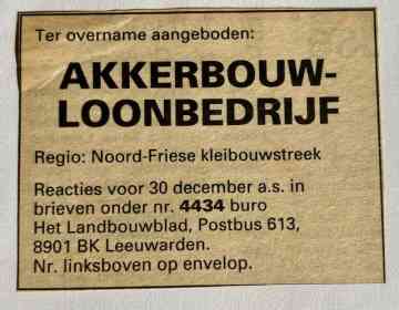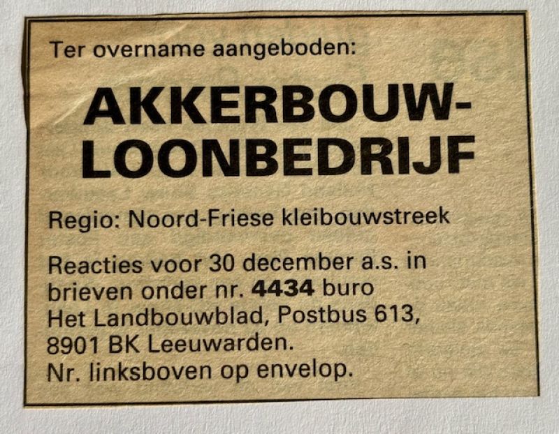 Nadat Peter en Janneke in 1990 trouwden zijn ze naar Eanjum verhuisd, ze namen daar het loonbedrijf van Fr. de Beer over.