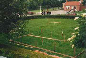 Op het stukje gras, hoek De Terp-Langgrousterwei, ontstaan de contouren van een nieuwe woning. Wat op de foto gras is, was jarenlang de moestuin van Albert Kingma, vaak beter bekend als Albert Post; hij was de postbode van het dorp. Hij was er heel vaak te vinden want er was altijd genoeg werk te doen.