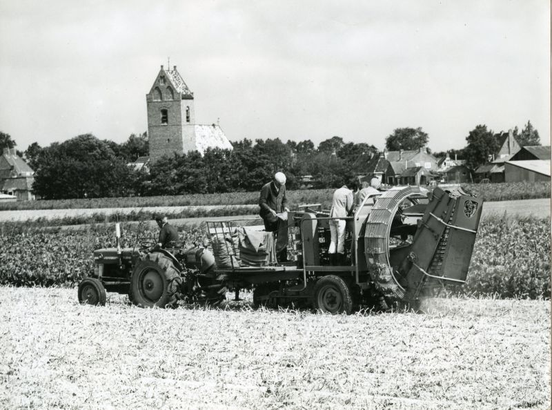 Aardappelrooien met gezicht op de Sint Caecilia.
