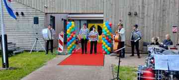 De openingsact van Shantykoor The Sinking Ships is hilarisch. Zij knippen het lint door en geven toegang tot het vernieuwde Streekhûs, waar een informele nazit is geregeld.