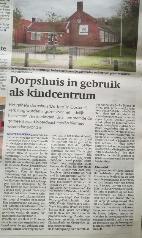 De subsidiegroep; Andre Beeksma, Tineke Slager, Geke Braaksma en Annie Bremer brachten zo'n 800.000 euro bij elkaar. Door de tijdelijke huisvesting van de basisschool in De Terp kon veel geld in het dorp blijven.