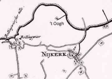 Terug naar het Ald Each. Deze straatnaam, er is maar één woning gebouwd aan deze straat, is afgeleid van de naam van de pastorieboerderij van Easternijtsjerk: ‘In ’t Oogh’. Na de Reformatie werd deze pastorieboerderij gebruikt door de predikant (of hij verhuurde die). In ieder geval behoorden de inkomsten tot het honorarium van de predikant. De boerderij was gelegen tussen de weg Nijtsjerk-Bollingwier en het riviertje de Peazens. Dat duurde tot ongeveer 1830 toen de boerderij werd afgebroken. De balken (bynten) werden hergebruikt voor het bouwen van het Armhuis in het dorp, aan de merktekens op de bynten is dat hergebruik nog steeds te herkennen in boerderij ‘1832’.
