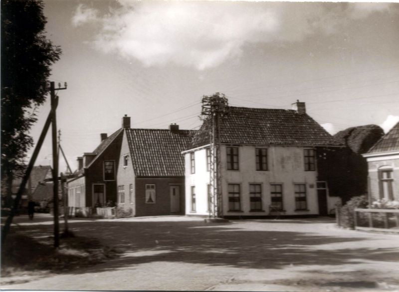 Het witte huis rechts op de foto is vanouds het dorpscafé, nu niet meer in functie, maar draagt nog steeds de naam Het Hoekje. Soms was de gevel helemaal wit, maar op andere foto’s geheel bedekt met een klimop (zie andere foto's in deze serie).