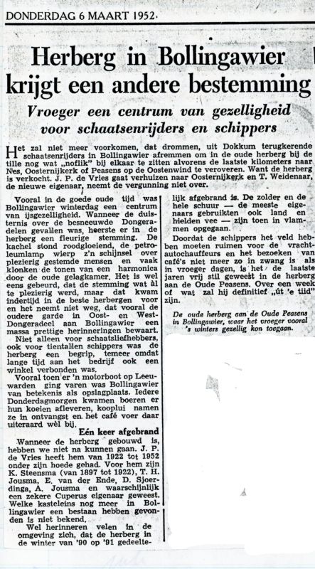 Een krantenartikel meldt in maart 1952 dat de oude ‘ijsherberg’ z’n functie gaat verliezen. Deze herberg-boerderij was in 1866 door timmerman Ruurd Sipkes Cuperij op een gunstige plek gebouwd.