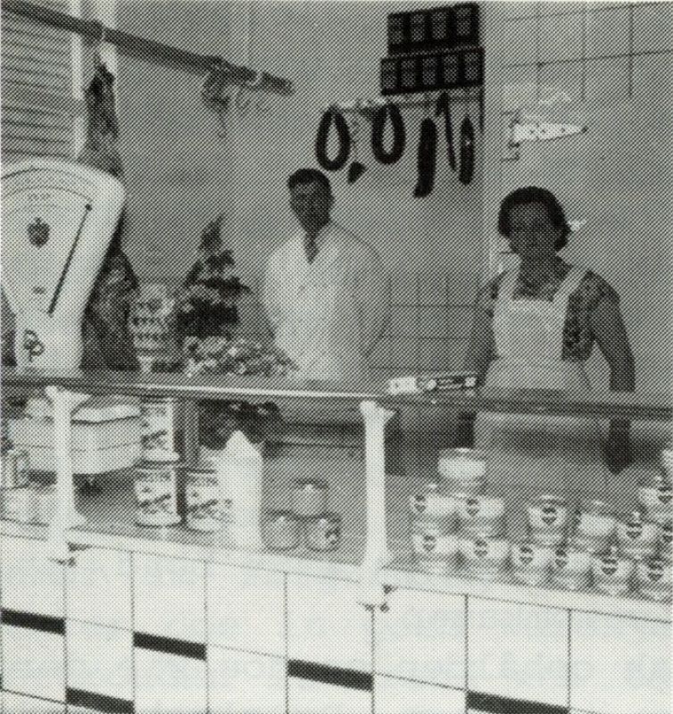 Voor het raam was een ‘hang’ en als er een koe geslacht was kwamen twee achterbouten hier aan te hangen met een half varken er tussenin of wat longstukken, een prachtig gezicht. ‘s Avonds stond er ook nog een lichtje op gericht. In 1966 kregen we een nieuwe toonbank en toen is de hang er weggehaald.