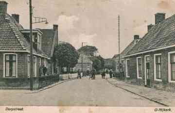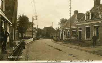 Het eerste huis rechts, tegenwoordig bewoond door de familie Douma, is rond 1955, toen de weg door het dorp werd verbreed, een paar meter naar achteren ‘verplaatst’.