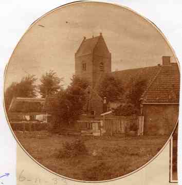 In de verte is nog net de hoek De Lyts Ein-De Buorren te zien waar drie huisjes naast elkaar stonden, in 1975 afgebroken om plaats te maken voor een woonhuis-postkantoor, nu bewoond door Waatse Elzinga.