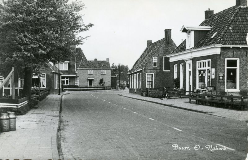 Midden op de foto (met erboven het dak van de hervormde kerk) de zuivelwinkel van Haike Kingma, tot 1956 was hier een smederij.