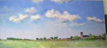 Jan en Tine hopen dat dit prachtige schilderstuk binnenkort te bewonderen zal zijn in dorpshuis De Terp. Ze komen het daar zelf graag bewonderen (tijdens de Reünie?).