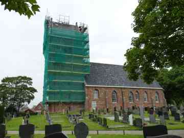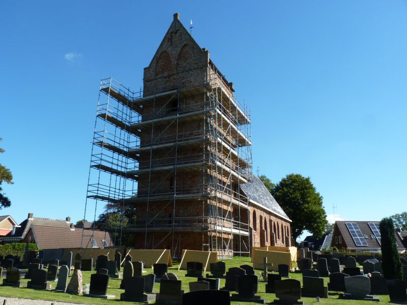 De bouwtijd van de toren wordt geplaatst eind 12e begin 13e eeuw, de tijd van de romaanse bouwstijl. Dat is ook goed te zien aan dit bouwwerk: zware en massieve muren, kleine en soms rondbogige openingen. Het bij de meeste oude kerken in Fryslân gebruikelijke zadeldak geeft de indruk van een eenvoudige, zelfs wat plompe, massieve toren. Beneden de verdieping waar zich de klokkenstoel bevindt, zijn de muren helemaal zonder versiering. Alleen enkele smalle muurspleten die zich binnenin de toren wat verbreden, zorgen voor onderbreking van de rijen stenen. De klokkenstoelverdieping is van buiten te herkennen door een zg. zaagtandlijst. Daarboven zitten in de noordelijke en de zuidelijke gevel in één nis twee dubbele, rondbogige galmgaten. De galmgaten aan de oost- en westzijde zijn enkelvoudig. In de top zijn dan nog in beide gevels twee gesloten nissen en een klein spaarveld, gesloten door gekoppelde rondboogjes, te zien. Op het dak staat een windvaan, gevormd door een leliekruis met haan uit ongeveer 1500.