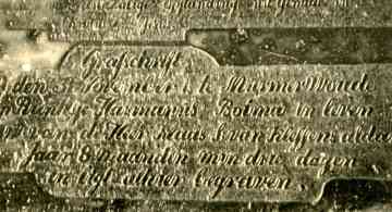 De grootste zerk (1.47 x 2.73 m) ligt recht voor de kansel en bevat o.a. het volgende opschrift: