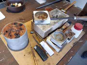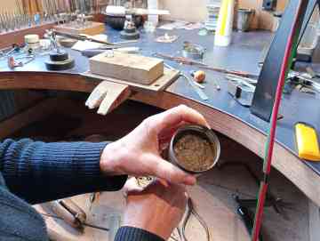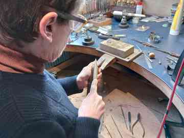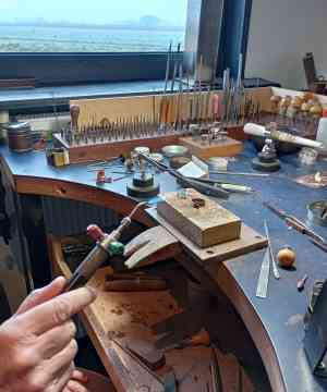 De armband 18 karaat met het steentje (wat in de maak is) heeft een goudwaarde van zo’n € 3000, = en de diamant kost zomaar € 1000, =. Soms krijgt Else ook goud aangeleverd waar ze dan weer een sieraad van maakt.