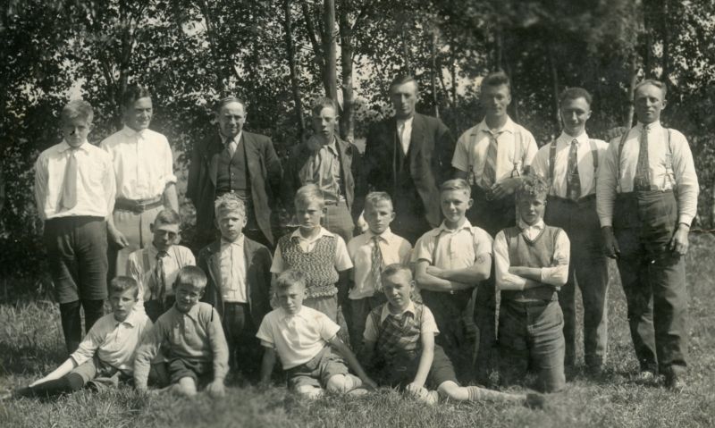 Een uitstapje met knapen, meisjes of jongelingen was daarom in die tijd een hoogtijdag. Daar hoorde natuurlijk een groepsfoto bij. Daarvan zijn er gelukkig een aantal bewaard gebleven, deze van de hervormde knapenvereniging van ongeveer 1940 is daar één van, al staan er ook wat oudere ‘knapen’ op deze foto.