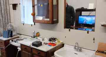 De toonbank en de artikelen zijn verdwenen, maar de kappersstoel stond er nog wel.