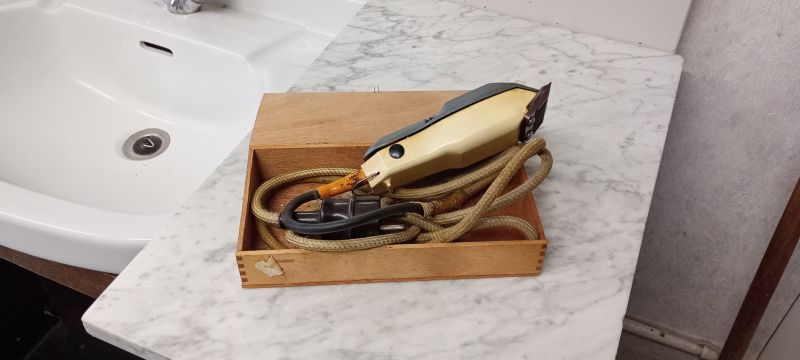 In die tijd hadden veel klanten eigen scheerspullen bij mij in de salon staan. Ik had er een aparte kast voor, die stond bijna vol met spul van klanten. Men kwam meestal twee keer per week, vaak woensdag en zaterdag, dan pakte ik hun eigen gerei, scheermes, zeep, kwast en kom. Omdat werklui het overdag vaak druk hadden, kwam het regelmatig voor dat men ’s avonds in de scheerwinkel kwam. Zaterdags werd het helemaal laat, want dan waren we tot 10 uur open. Het werd ook wel eens later, want dan was het praatje nog niet af. Sommigen zaten al te knikkebollen “Laat mij maar eerst, want hij slaapt toch nog”, werd er gezegd. Ze sliepen ook wel in de kappersstoel en als ik dan aan de spuit toe was, schrokken ze wakker. Geknipt werd er meestal eens per maand.