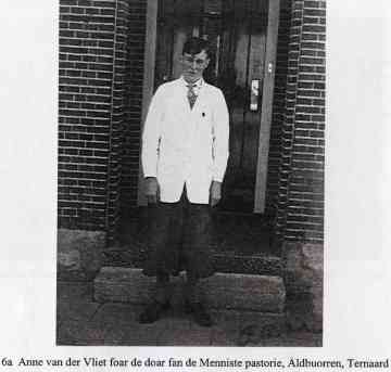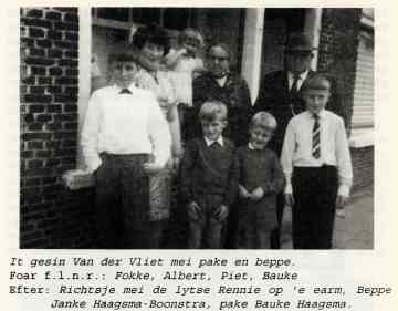 “Ik ben 73 jaar geleden geboren in Witmarsum (zo steekt Anne van der Vliet van wal). Niet dat ik daar nog veel van weet, want al vrij snel verhuisden we naar Easterein. Vader was arbeider bij de boer en in die tijd was het gewoonte dat arbeiders vaak verhuisden, ons gezin wel zes keer. Dat gebeurde meestal op ‘Alde Maaie’, op 12 mei. De wegen waren dan vol van arbeiders die met paard en wagen van de boer naar een andere plaats gingen. ’s Morgens molken ze nog bij de oude boer, daarna moest alles worden overgebracht (zo veel had men toen niet) en ’s avonds molken ze al bij de nieuwe boer. Moeder moest maar zorgen dat de hele boel een plek kreeg. We waren thuis met z’n vieren. Ik was de oudste, dan kwamen mijn beide zusters Pytsje en Geartsje en onze Ulbe was de jongste. Ulbe noemt zichzelf nu Albert want hij woont in Canada en daar kan men de naam Ulbe niet zo goed uitspreken. Hij is direct na de oorlog  vertrokken en één van mijn zusters zit daar ook. Het is nu bijna 40 jaar terug en toen dachten we dat het een afscheid voor het leven was. Later zijn ze hier een aantal keren geweest en een paar jaar terug zijn wij daar ook geweest. Ja dat is allemaal veranderd, “tiden hawwe tiden”.