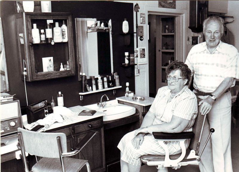 Begin zeventiger jaren kon het eigenlijk niet meer en in 1972 kreeg ik de kans, via wethouder Gerrit Haaksma, om op het Streekarchief in Dokkum aan het werk te gaan. Na nog een tijdje bij het Administratief Centrum belandde ik bij de Parkeerpolitie. Dat was wat nieuws voor Dokkum, ja zelfs voor heel Fryslân. Ik ben met een politieagent op stap geweest en na zo’n zes lessen kon het beginnen. Nou daar heb ik wat beleefd, daar kan je wel een boek over schrijven. Voor ons was het een uitkomst, die vastigheid bij de Parkeerpolitie. Eerder was het zo, als er geen klanten kwamen, bijv. met een aantal dagen slecht weer, dan werd er ook niets verdiend. Maar dat was nu voorbij. Als zelfstandige moet je ook voor de meeste onkosten staan, dat is bij loondienst niet zo. Ik bleef op zaterdag nog wel knippen, dat wilde ik erbij houden. Ik was tien jaar bij de politie, van 1972 tot 1982, toen kon ik in de VUT. Het winkeltje hielden we aan tot 1988 maar dat werd op ’t laatst snel minder, we bleven er ook niet altijd voor thuis en hoe gaat zoiets, komt men een keer voor de dichte deur, dan is het al gauw “die winkel is toch dicht” en men gaat naar een ander. Dat was met het knippen ook het geval, als je alleen op de zaterdag open bent, komen er ook minder klanten, alleen de vaste, meest oude klanten houd je over.
