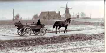 Waar nu kapitale en kolossale tractoren met gigantische landbouwmachines over de smalle wegen denderen, hobbelde destijds een ‘haaiwein’ met houten wielen, getrokken door een mak paard, met een rustig gangetje op weg naar het bouwland.