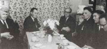 De foto is genomen in de woning van kapper Van Vliet bij het bezoek van de nieuwe burgemeester van Oostdongeradeel, de heer Van Wijhe.