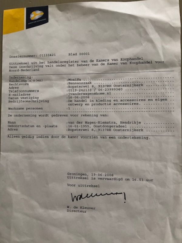 De inschrijving in het Handelsregister op 19 juni 2008 wordt bij de Bedrijfsomschrijving gemeld: De handel in kleding en accessoires en eigen ontwerp en productie accessoires.