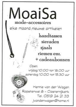 "MoaiSa", een winkeltje om in te struinen met mode accessoires aan de Ropsterwei 8. (achter de bruine schuur)