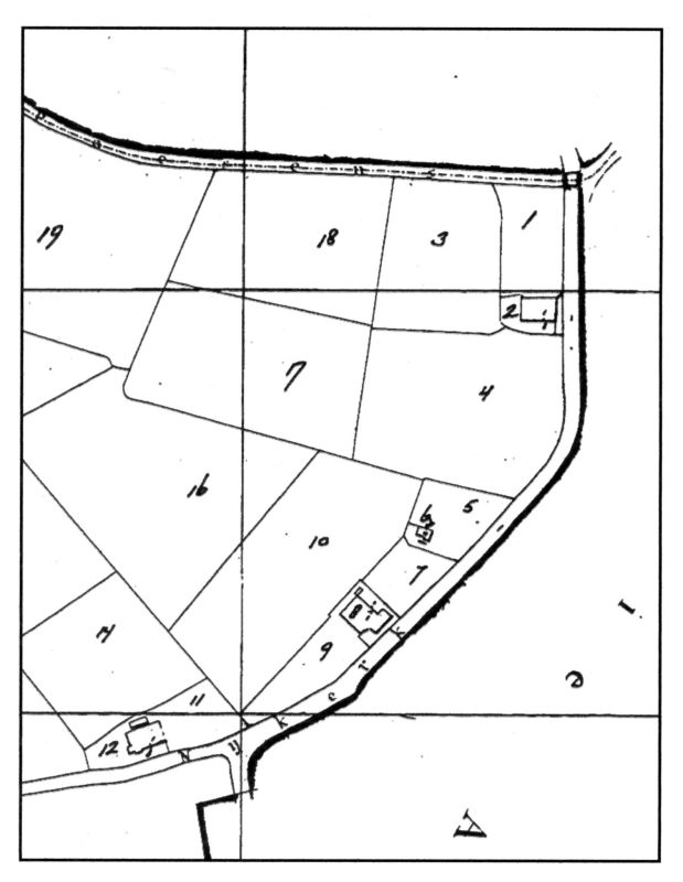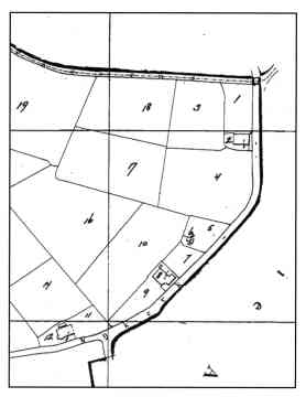 Er was in 1830 nog geen kadaster, al waren de tekeningen daarvoor wel klaar. Echter de naastliggers worden wel genoemd: weduwe Hoekstra ten zuiden, Jansma ten westen, Rypma ten noorden en de weg ten oosten. Op het kaartje zijn hun eigendommen terug te vinden: