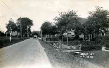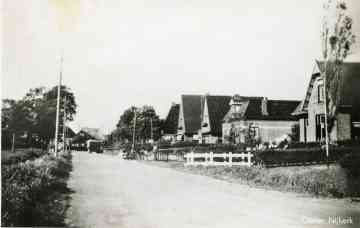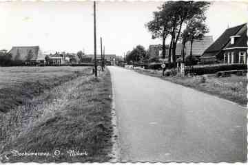 Op deze foto staan nog de bruggetjes over de sloot langs de rechterkant van de weg, in de jaren zeventig zijn deze bruggetjes allemaal verdwenen toen de sloot werd gedempt. Aardig is dat momenteel weer bruggetjes worden aangelegd aan de linkerkant van de weg waar nu huizen worden gebouwd. Op de foto uit 1961 hieronder is nog net de boerderij te zien waarvan op deze foto geheel rechts de oprit is te zien. In 1961 stond daar het naambord Ooster-Nijkerk. Dat bord staat nu een heel stuk verder de straat uit.