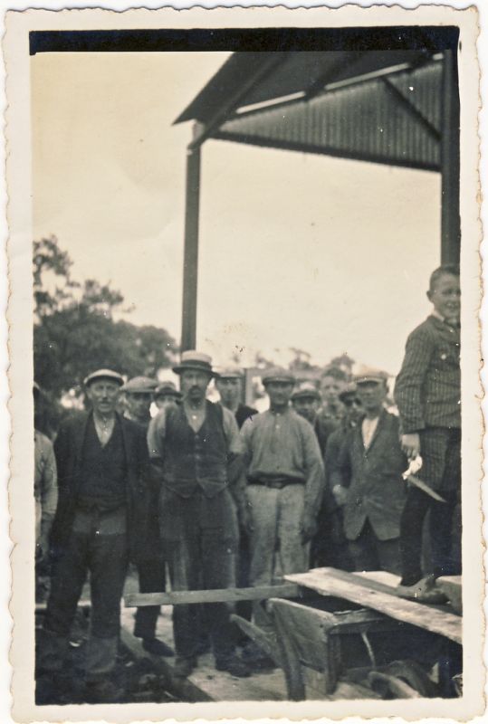 Het zijn de arbeiders van aannemer Jan de Haan uit Ternaard, misschien staat hij er zelf ook op: rechts verscholen achter een paal, achter de man met de schep.