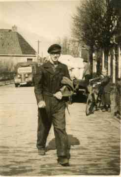 Pieter Holwerda, zoon van slager Tjeerd Holwerda, onderweg naar huis aan het begin van de Ropsterwei.
