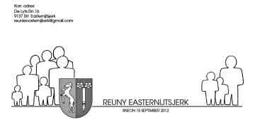 Inmiddels is het alweer een paar weken geleden dat wij in Oosternijkerk waren voor de Reünie. Alle indrukken van kijken ‘wie is dat?’, herken ik die of die, het vele praten is weer rustig geworden in m’n hoofd (delbêde). Tijd om iedereen te bedanken die dit allemaal tot stand hebben gebracht, wat een werk, wat een geweldige twee dagen hebben jullie ons gegeven. En ik maar opscheppen tegen iedereen die het horen wil, uit wat een geweldig dorp ik kom. Hoe een klein dorp (het is groter dan toen ik vertrok in 1951) groot kan zijn!
