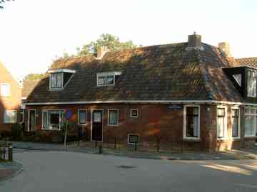 Hoekhuis Foeke Sjoerdsstrjitte, rechts aan de voorkant aan De Buorren woonde de hoofdmeester, huis gebouwd in 1822. Daarachter langs de Foeke Sjoerdsstrjitte het schoolgebouw, de bouwnaad is duidelijk zichtbaar. In 1838 is het schoolgebouw nog vernieuwd, in 1883 ging dit schoolgebouw dicht.