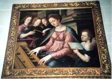 Der binne in protte skilderijen bekind mei dêrop ôfbyldingen fan Sint Cecilia, it âldste fan 1480 fan Geertgen tot St Jans, mar ek fan hiel ferneamde skilders lyk as Rafaël (1514) en Conca. Yn it earstoan is der in lyts oargeltsje te sjen mar dat wurdt almaroan grutter, lyk as it oargel op it skilderij dat wy yn Chermonceaux seagen.
