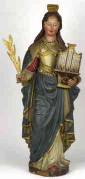 Sint Cecilia is dus te herkennen as in frou mei in palmtak (as roazen en leeljes) op ‘e holle, in swurd yn ‘e buert en dan benammen muzyk-ynstruminten, it oargel foarop. Hja waard de patrones fan fanfares, ynstrumintmakkers, koarknapen, muzikanten, oargelisten, oargelbouwers, fioelbouwers en sjongers. Sels in pear hjoeddeiske nammen binne noch oan har namme ûntliend; wa’t Chiel, Sheila as Sil hyt, tankt syn as har namme oan Cecilia.