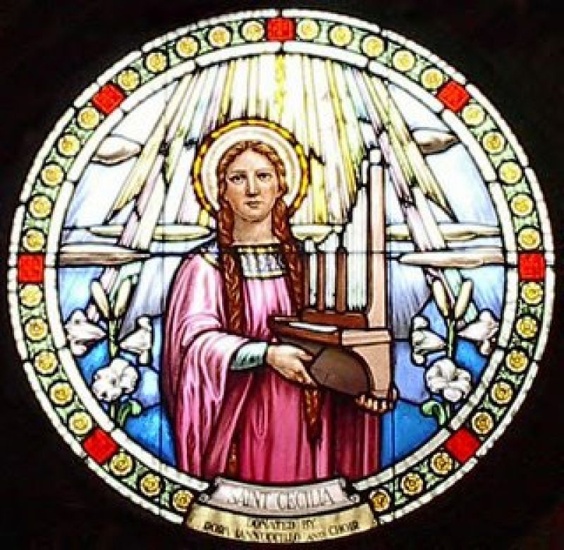 Oant no ta is der noch gjin ferbân besprutsen fan Cecilia mei de muzyk. Dy ferbining is eins by ûngelok tastân kaam. Yn it officie op har feestdei stie sûnt de achtste ieu: 'Terwijl de instrumenten klonken, zong zij in haar hart alleen voor de Heer en zei: Heer, moge mijn hart en mijn lichaam onbevlekt blijven, opdat ik niet beschaamd worde'. Dizze sin waard letter ynkoarte ta 'terwijl de instrumenten klonken, zong Cecilia voor de Heer'. Dat seit ús noch altiten net folle mar yn it Latyn wurdt it dúdliker: 'Cantantibus organis Caecilia Domino decantabat'.